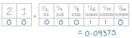 and the 'right' half to represent the fraction after the decimal point (0.5, or ½ in this case).
